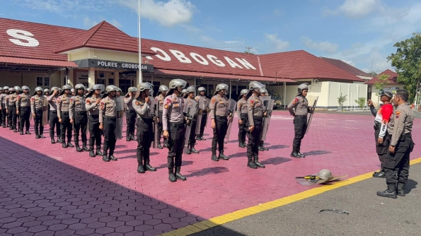 Polres Grobogan - Polda Jateng - Sat Samapta Polres Grobogan menggelar latihan Pengendalian Massa (Dalmas) sebagai upaya meningkatkan kesiapsiagaan dan profesionalisme personel dalam menghadapi berbagai potensi gangguan keamanan dan ketertiban masyarakat (kamtibmas). Latihan tersebut dilaksanakan di lingkungan Mapolres Grobogan.