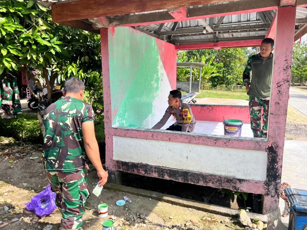 Sejak pagi, aparat TNI Polri dan masyarakat bahu-membahu membersihkan area sekitar pos, memperbaiki fasilitas, serta melakukan pengecatan ulang agar pos kembali tampak rapi dan nyaman. Kegiatan tersebut menjadi bukti nyata semangat kebersamaan dan kepedulian sosial antara aparat keamanan dan masyarakat desa.