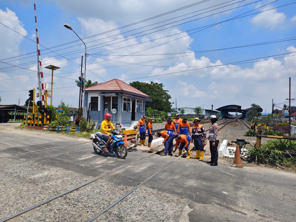 “Kami melakukan koordinasi dengan PT KAI serta pengecekan langsung di lapangan untuk memastikan proses perbaikan berjalan dengan baik. Hal ini penting agar pengguna jalan merasa aman saat melintasi perlintasan kereta api,” ujar IPDA Novi Ariani.