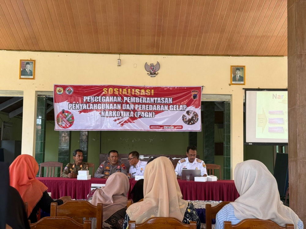 Polres Grobogan - Polda Jateng - Polsek Penawangan menggelar kegiatan Sosialisasi Pencegahan, Pemberantasan, Penyalahgunaan, dan Peredaran Gelap Narkoba (P4GN) di Desa Wedoro, Kecamatan Penawangan, Kabupaten Grobogan, Rabu (15/4/2026).