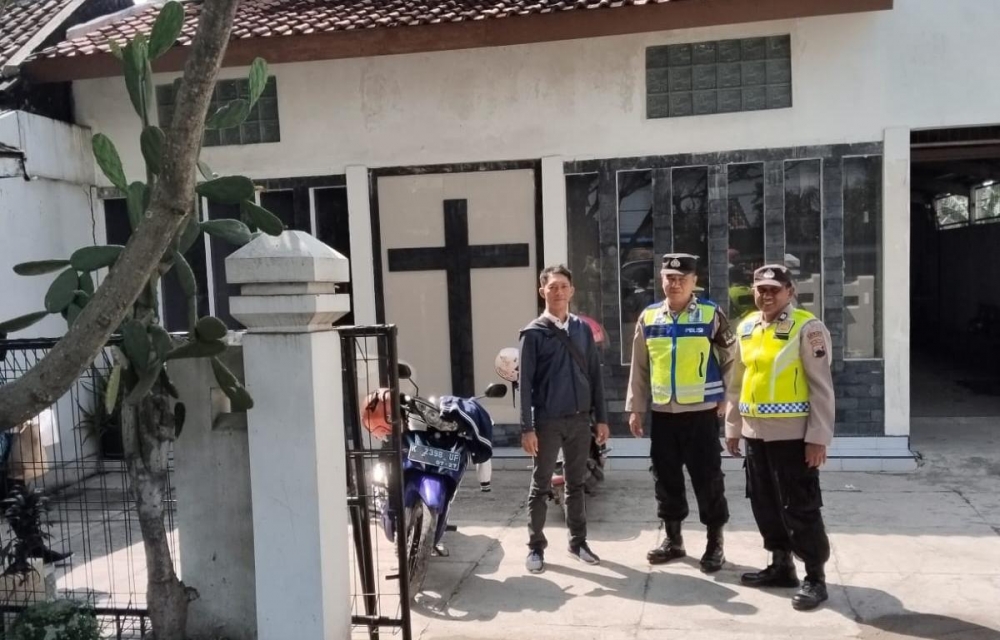 Personel kepolisian ditempatkan di area pintu masuk gereja, halaman parkir, serta sekitar lokasi guna mengantisipasi potensi gangguan keamanan.