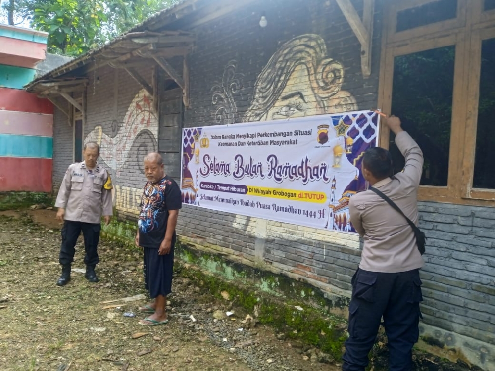 Untuk mendukung kebijakan Pemkab Grobogan, Polsek Grobogan Polres Grobogan mengambil langkah dengan melakukan pemasangan banner imbauan agar tempat hiburan karaoke tutup selama bulan ramadhan tahun ini.