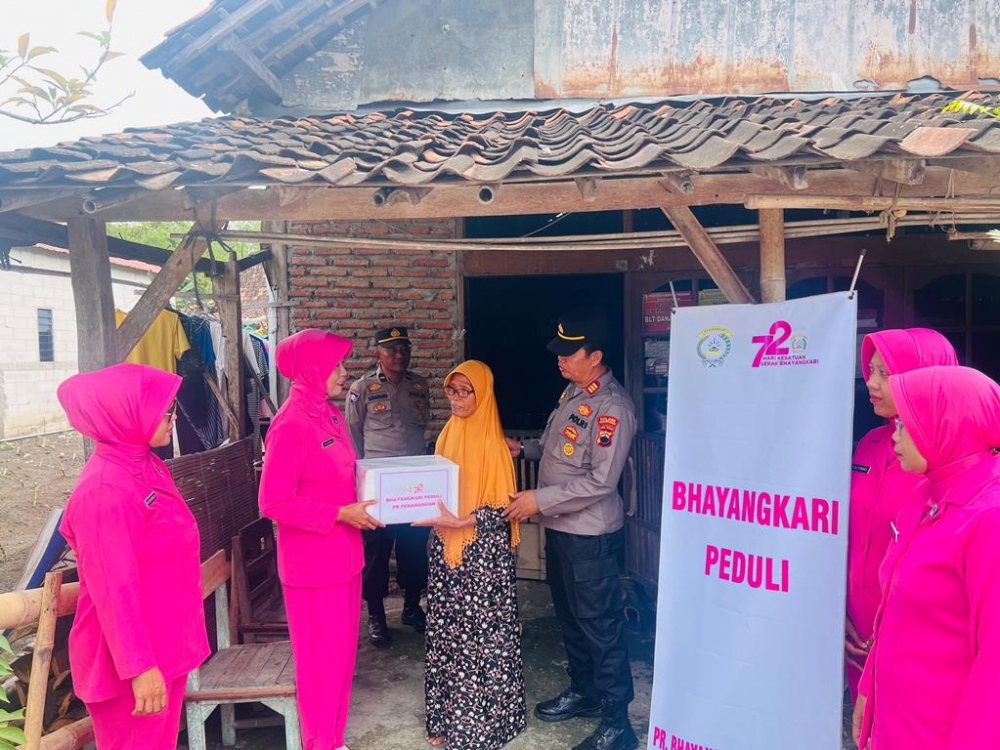 Dalam kegiatan itu, para personel Polsek Penawangan Polres Grobogan bersama Bhayangkari tampak membagikan sembako dari rumah ke rumah.