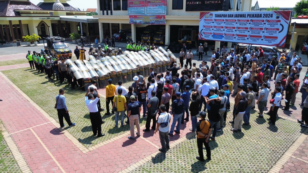 Polres Grobogan - Polda Jateng - Kesiapan pengamanan Pemilihan Kepala Daerah (Pilkada) serentak 2024, dilakukan Polres Grobogan dengan menggelar latihan Sispamkota (Sistem Pengamanan dalam Kota).