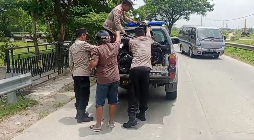 Anggota Polsek Klambu yang sedang patroli, tanpa ragu langsung turun tangan. Mereka mengangkut sepeda motor milik warga menggunakan mobil patroli dan membawanya ke tempat tambal ban.