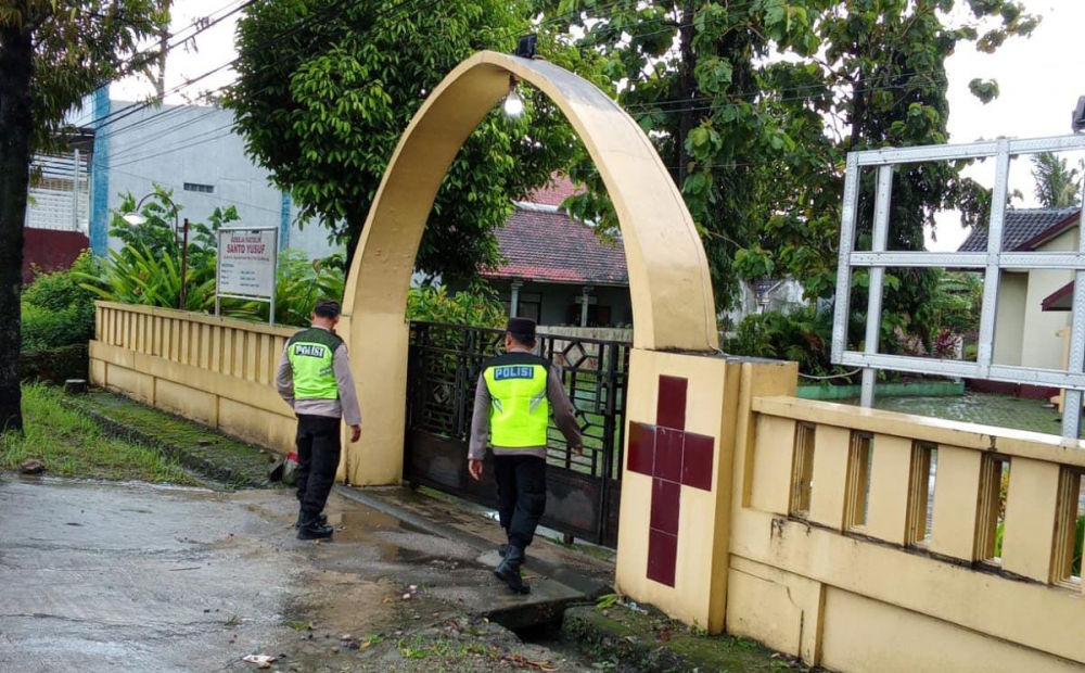 Selain memantau situasi di dalam dan sekitar gereja, petugas juga berkoordinasi dengan pengurus gereja untuk memastikan seluruh rangkaian ibadah dapat berjalan dengan lancar dan aman.