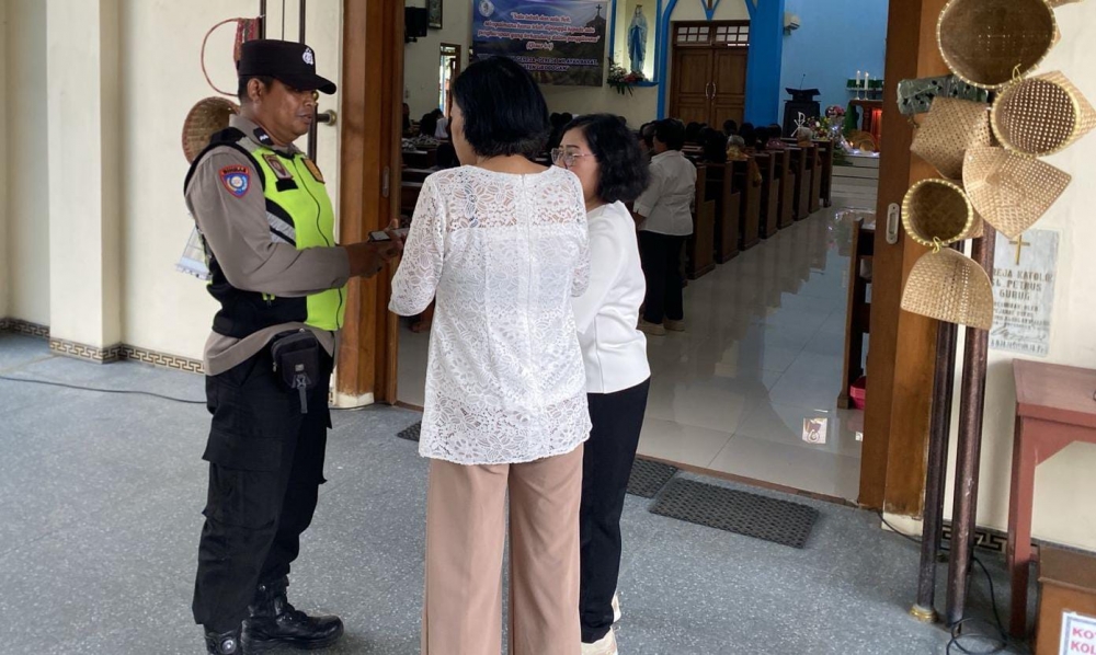 Selain itu, petugas memberikan imbauan kepada jemaat agar tetap menjaga ketertiban, keamanan, dan toleransi antar umat beragama.