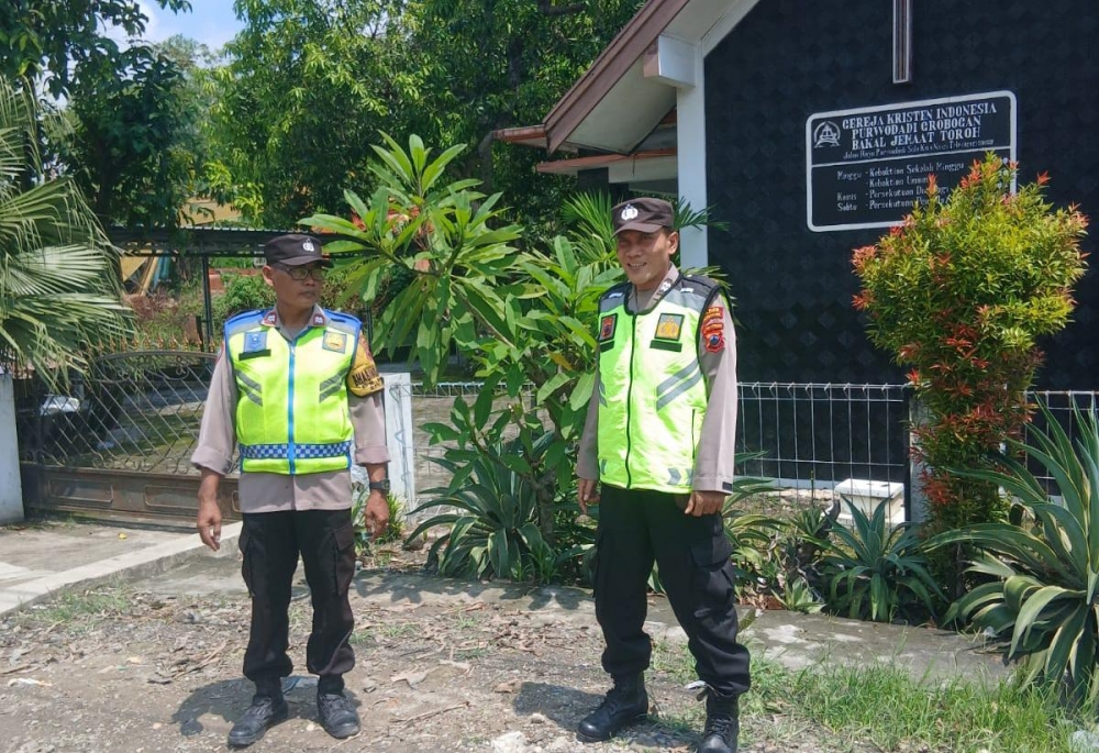 Polres Grobogan - Polda Jateng - Polsek Toroh melaksanakan patroli di sejumlah gereja yang berada di wilayah hukumnya sebagai upaya menjaga keamanan dan ketertiban masyarakat, khususnya saat pelaksanaan ibadah, Minggu (12/4/2026).
