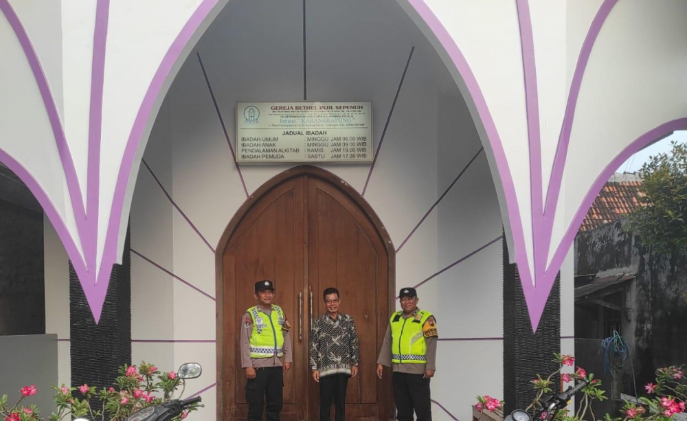 Kegiatan ibadah Minggu yang dihadiri jemaat dari berbagai wilayah berlangsung dengan khidmat dan lancar berkat kehadiran aparat kepolisian yang sigap menjaga situasi keamanan.